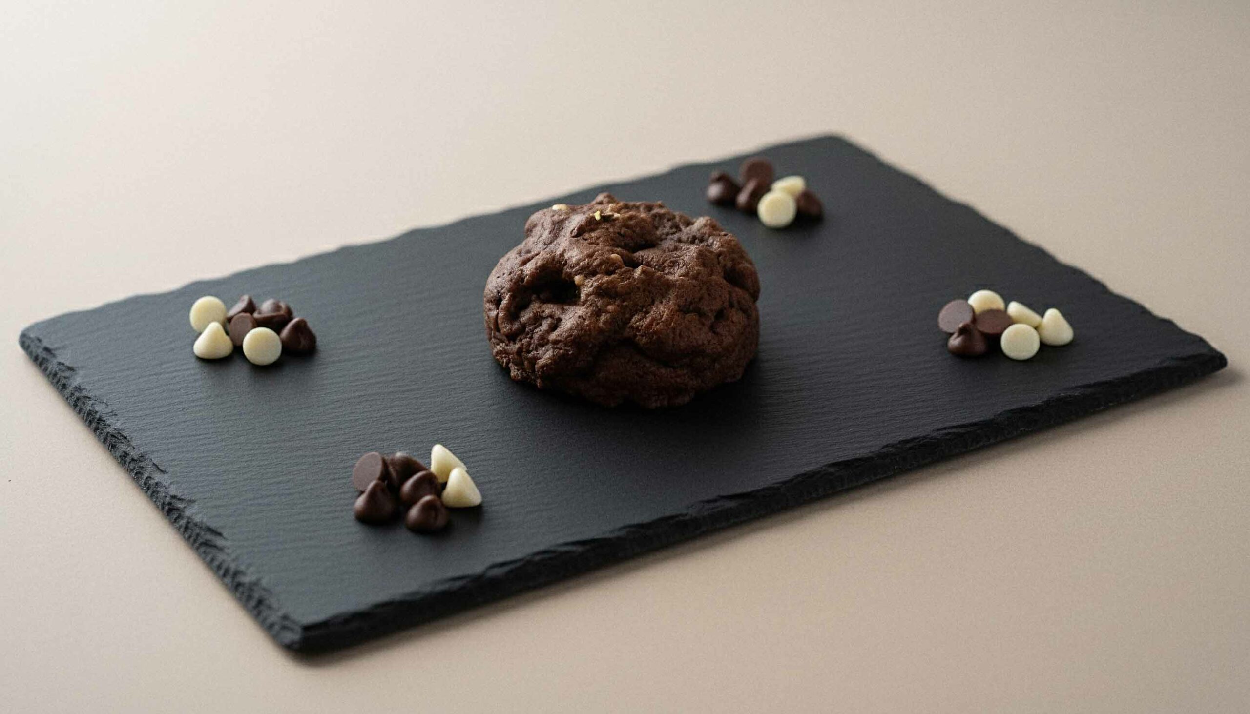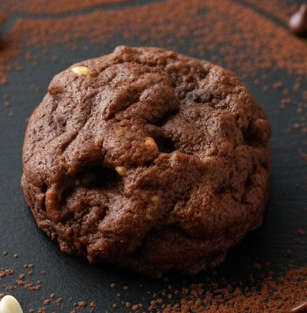Un jeu de textures maîtrisé entre moelleux enveloppant et bords délicatement dorés. À chaque bouchée, la douceur du chocolat blanc rencontre la tendresse du chocolat au lait, relevée subtilement par une fine poudre de cacao qui tapisse le palais. Un cookie à la fois fondant, profond et réconfortant.